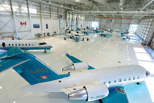 LAS focus on technology also extends to its headquarters at Vancouver International Airport. Its London aviation centre, completed in 2008, is a state-of-the-art facility that includes an impressively sized 64,000-square-foot hangar. We can easily store a couple of Globals and multiple Challengers and Lears, remarked Powell. Built to withstand earthquakes, the spacious hangar is protected by a cutting-edge fire safety system and fire-resistant partition doors. It also has an advanced electrical system, an overhead crane that assists with engine replacements and wireless Internet that allows technicians to access the latest maintenance information on the spot.