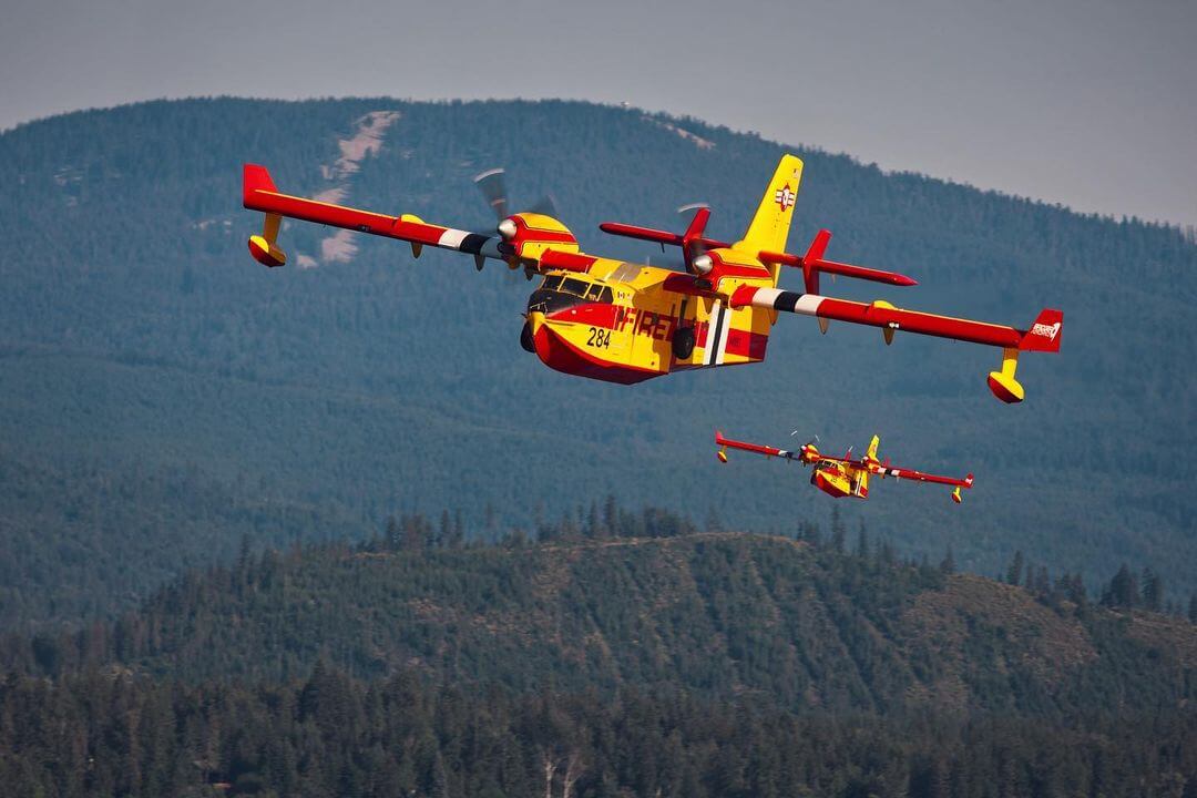 Bridger Aerospace Scooper 284 and 285 climbing out of Priest Lake in northern Idaho while battling the Consalus Fire. Photo submitted by Ashton Heyliger, Instagram user @airside_ash