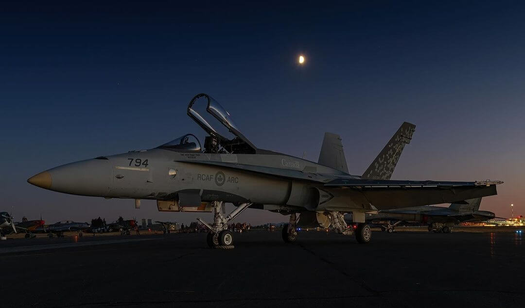 The 2022 CF-18 Demonstration Team jet on the Abbotsford Air Show hot ramp after the Twilight demonstration. Tagged on Instagram by @hazers_flightline