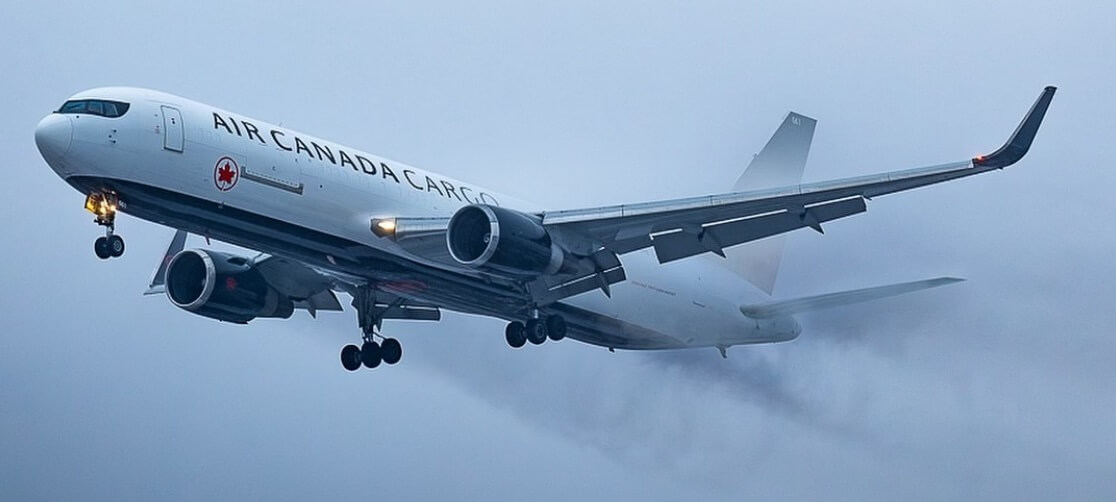 Air Canada Cargo streaks across grey skies. Photo courtesy of @aerofoil_imagery
