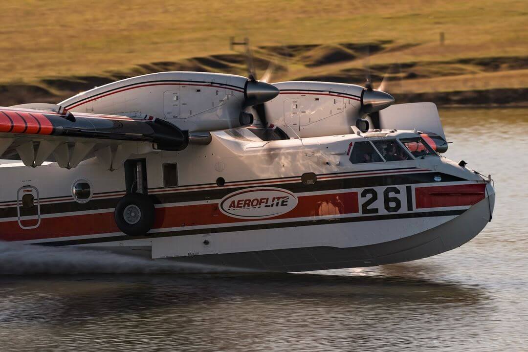 A Conair waterbomber, skimming. Tagged on Instagram by @restrictedmedia_